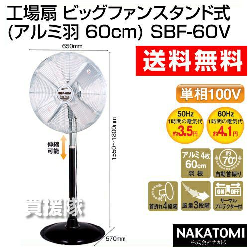 他の画像を見る 【送料無料】60cmの大型アルミ4枚羽根で強力扇風! 《法人限定》ナカトミ 業務用扇風機 工場扇 ビッグファンスタンド式 (アルミ羽 60cm) SBF-60V 買援隊 特別価格 ¥ 28,500 税込 在庫切れ 詳細を見る お気に入りに登録する