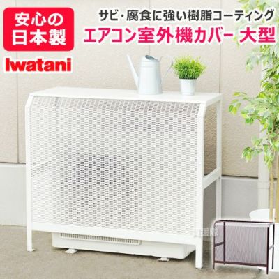 【日本製 大型 エアコンカバー メッシュ 日除け 日よけ 遮光 遮熱 目隠し 耐候性 猛暑 日光 雨 積雪 雪 砂埃 対策 寒冷地 ステンレス製 ベランダ 庭 省エネ 節電 節約 劣化防止 頑丈 高さ調節 棚 エアコンラック 保護カバー 白 茶 Iwatani】