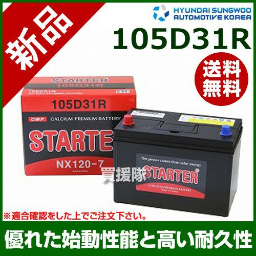 他の画像を見る 【送料無料】優れた品質・安定した性能 ヒュンダイ 国産車用 (STARTER) 密閉型バッテリー 105D31R[互換品:65D31R / 75D31R / 85D31R / 95D31R / 105D31R / 115D31R] 買援隊 特別価格 ¥ 11,000 税込 在庫切れ 詳細を見る お気に入りに登録する