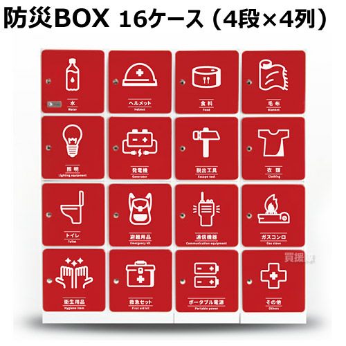 他の画像を見る 【送料無料】オフィスに合わせてカスタムできる防災棚! 防災BOX 16ケース (4段×4列) DSB-016440 買援隊 特別価格 ¥ 544,500 税込 詳細を見る お気に入りに登録する