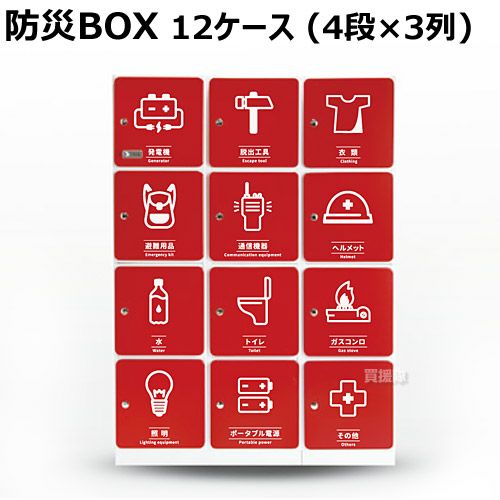 他の画像を見る 【送料無料】オフィスに合わせてカスタムできる防災棚! 防災BOX 12ケース (4段×3列) DSB-012430 買援隊 特別価格 ¥ 440,000 税込 詳細を見る お気に入りに登録する