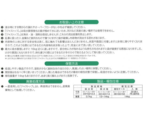 他の画像を見る 【送料無料】芦森工業 高吸水性ポリマー止水袋 ジャストップ 芦森工業 高吸水性ポリマー止水袋 ジャストップ (20袋入) 買援隊 特別価格 ¥ 56,000 税込 在庫切れ 詳細を見る お気に入りに登録する