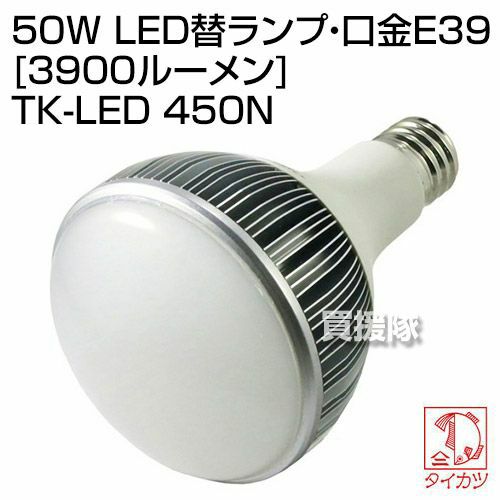 他の画像を見る 【送料無料】約10年も取り替え不要の40,000時間の超寿命 鯛勝産業 50W LED替ランプ ・口金E39 [3900ルーメン] TK-LED 450N 買援隊 特別価格 ¥ 27,300 税込 詳細を見る お気に入りに登録する