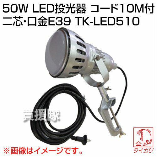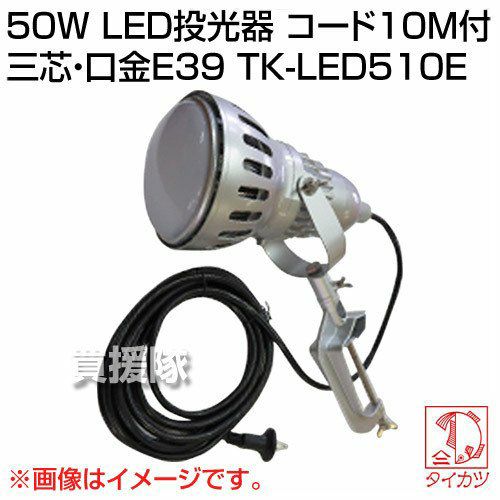 他の画像を見る 【送料無料】LED仕様の為、レフ球投光器より長寿命 鯛勝産業 50W LED投光器 コード10M付 三芯・口金E39 TK-LED510E 買援隊 特別価格 ¥ 47,100 税込 詳細を見る お気に入りに登録する