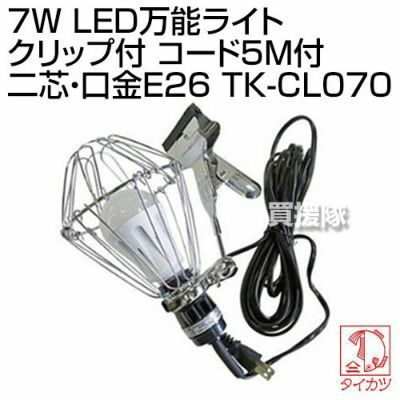 他の画像を見る 省エネ長寿命。便利な連結コンセント付 鯛勝産業 7W LED万能ライト クリップ付 コード5M付 二芯・口金E26 TK-CL070 買援隊 特別価格 ¥ 4,200 税込 詳細を見る お気に入りに登録する