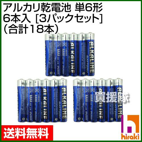 他の画像を見る 【メール便送料無料】単六乾電池、ペンライトなどの電池交換に ヒラキ アルカリ乾電池 単6形 6本入 [4パックセット] (合計24本) 買援隊 特別価格 ¥ 1,770 税込 会員特別価格 ¥ 1,590 税込 詳細を見る お気に入りに登録する