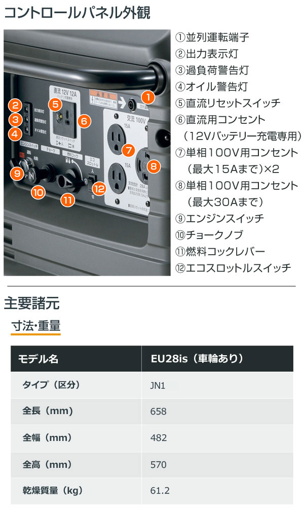 5. 《法人限定》ホンダ 4サイクル インバーター発電機 EU28is JN1 車輪付き 【フルカバー】