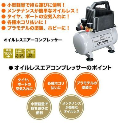 特徴 小型軽量で持ち運びに便利。メンテナンスが簡単なオイルレス。