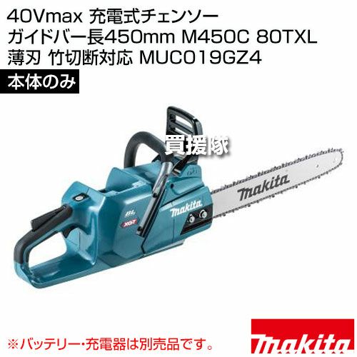 他の画像を見る 【送料無料】マキタ 40Vmax 充電式チェンソー マキタ 40Vmax 充電式チェンソー ガイドバー長450mm M450C 80TXL 薄刃 竹切断対応 [本体のみ/バッテリ・充電器別売] MUC019GZ4 買援隊 特別価格 ¥ 69,100 税込 詳細を見る お気に入りに登録する