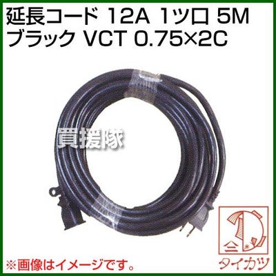 鯛勝産業 延長コード 12A 1ツ口 5M ブラック VCT 0.75×2C [カラー:ブラック]