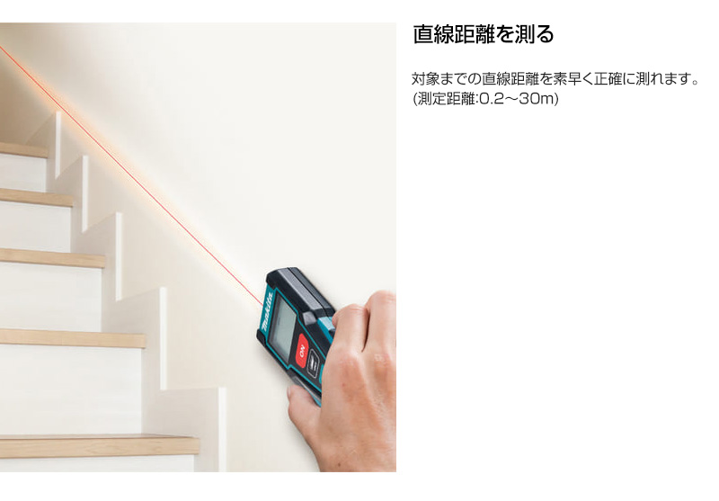 【直線距離を測る】対象までの直線距離を素早く正確に測れます。(測定距離:0.2~30m)