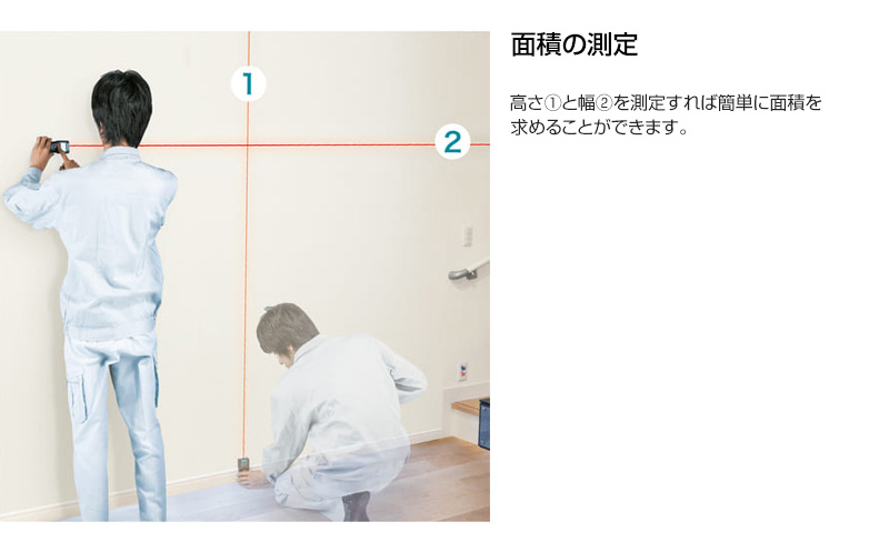 【面積の測定】高さ①と幅②を測定すれば簡単に面積を求めることができます。