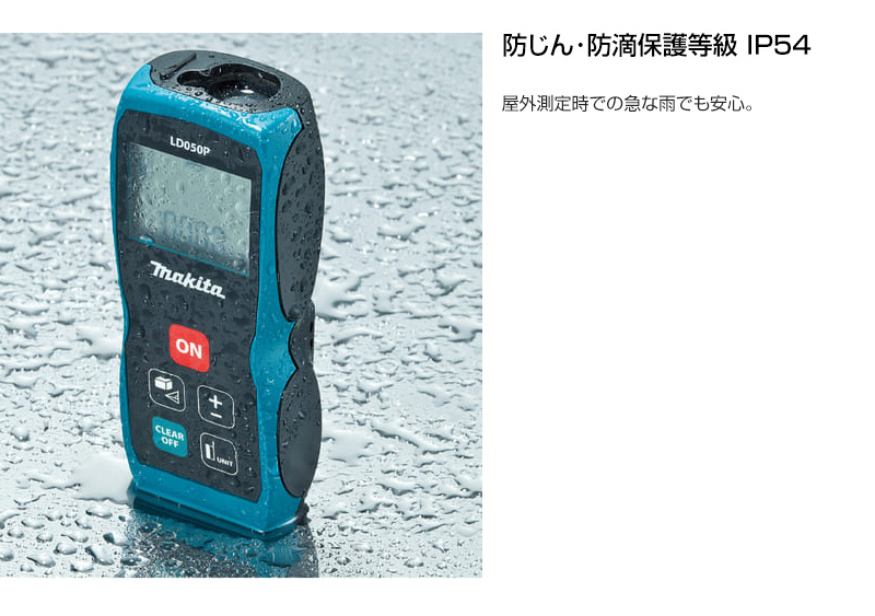 【防じん・防滴保護等級 IP54】屋外測定時での急な雨でも安心。