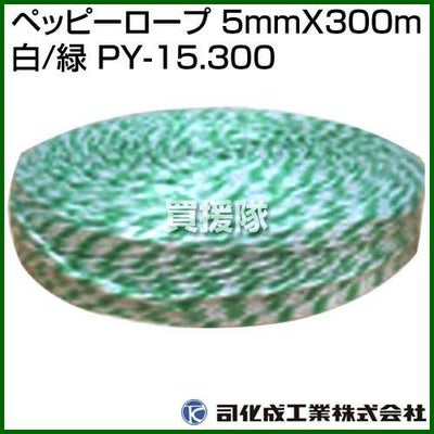 司化成工業 ペッピーロープ 5mm×300m 白/緑 PY-15.300 [カラー:白/緑]