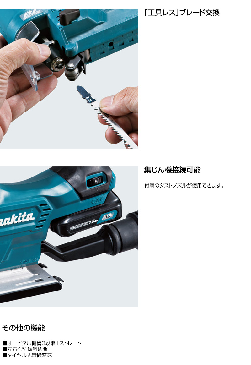 【最速切断 ハイパワー 高性能ブラシレスモータ 高速回転 工具レス 集じん機接続可 オービタル機構3段階 傾斜切断 ダイヤル式無段変速 充電式 コードレス 工具 電動工具 DIY ツール 工具 用品 makita 純正品】