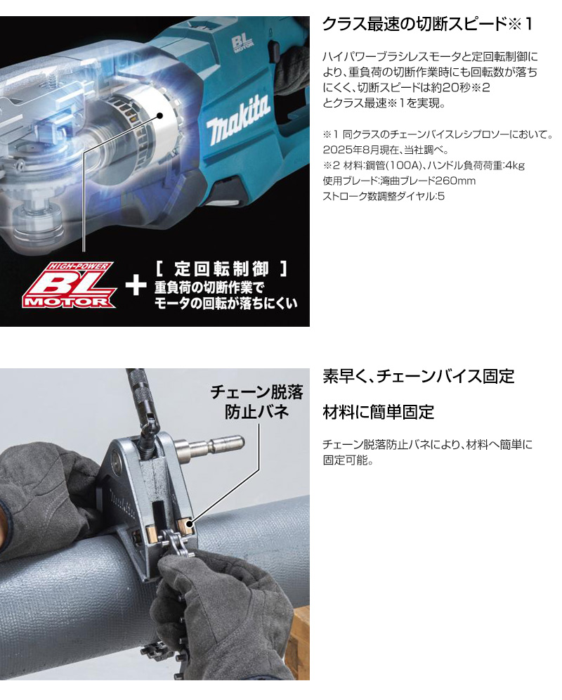 ※1 同クラスのチェーンバイスレシプロソーにおいて。2025年8月現在、当社調べ。