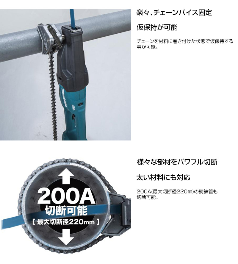 【チェーンバイス 簡単固定 パワフル 切断 太径材 ケース付 高耐久 チェーン脱落防止バネ 仮保持 鋳鉄管 モルタルライニング鋳鉄 防水 IPX6 充電式 コードレス 工具 電動工具 DIY ツール 工具 用品 makita 純正品】