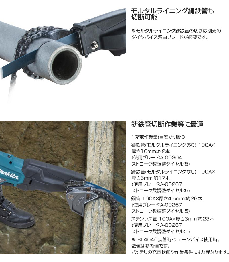 【モルタルライニング鋳鉄管も切断可能】※モルタルライニング鋳鉄管の切断は別売のダイヤバイス湾曲ブレードが必要です。