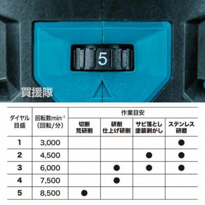 • 付属品バッテリ BL4040×2本、充電器 DC40RA、ケース、研削砥石36P、ロックナットレンチ20(782401-1)、サイドグリップ(GA019Gのみ)