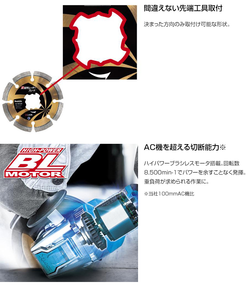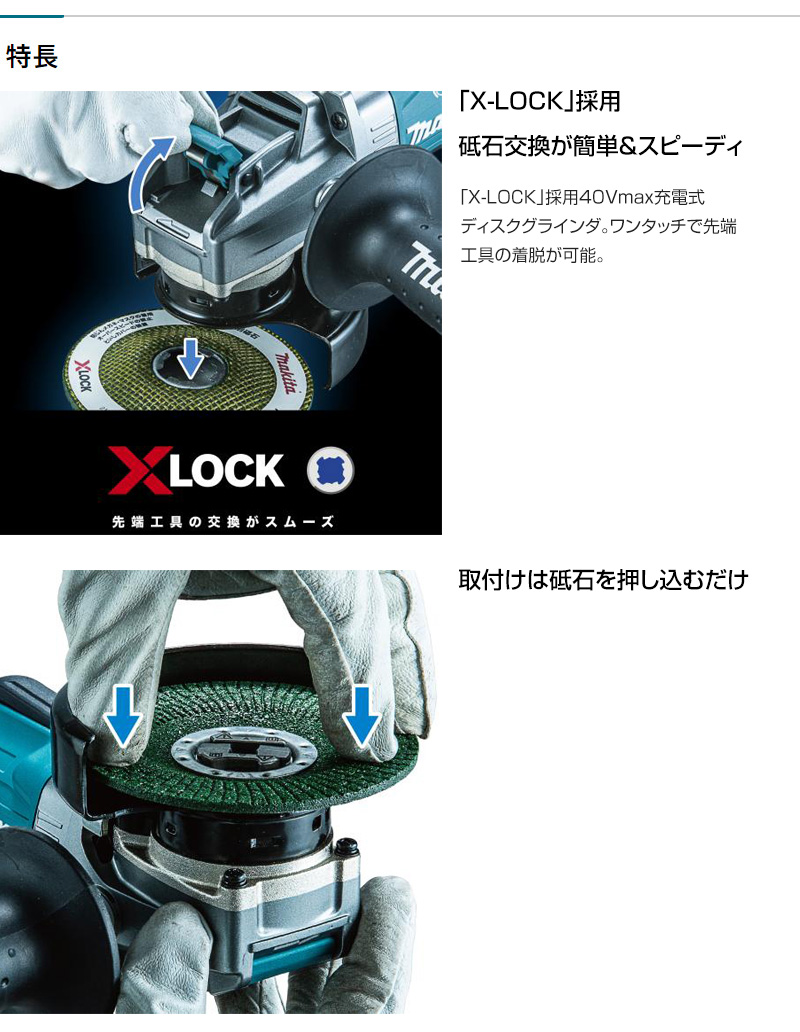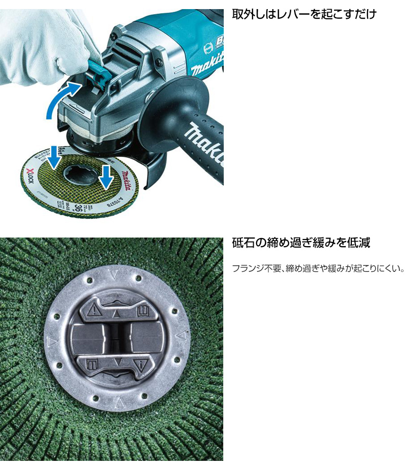 「X-LOCK」採用で砥石着脱はワンタッチ