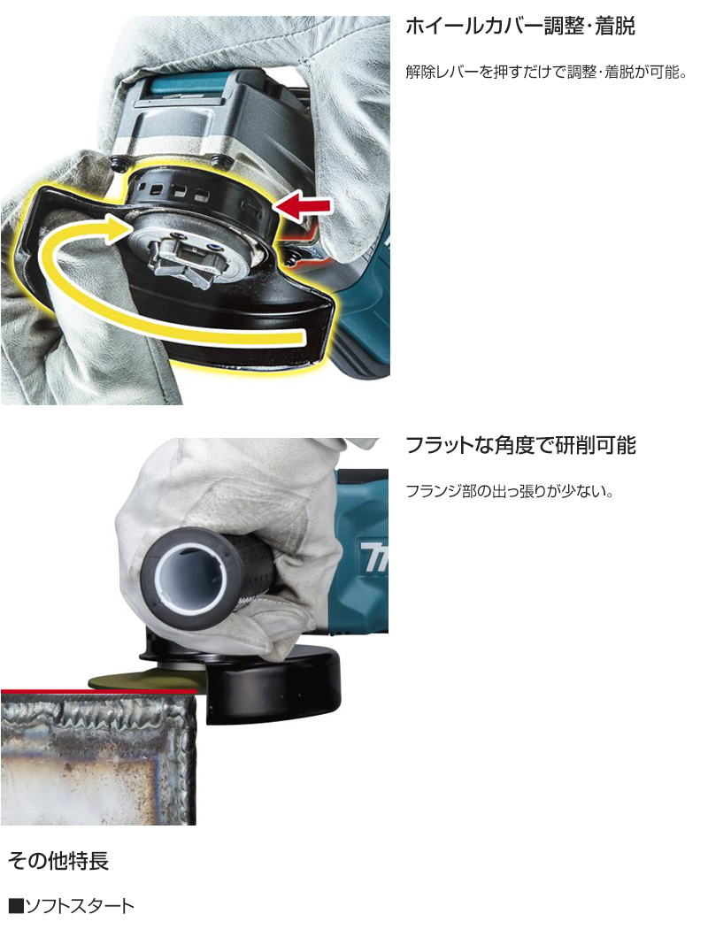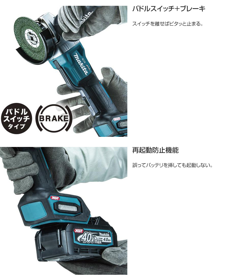 【パドルスイッチ X-LOCK 砥石着脱ワンタッチ 反動低減 再起動防止機能 本体防水保護等級IPX6 フラット 研削 充電式 コードレス 工具 電動工具 DIY ツール 工具 用品 makita 純正品】