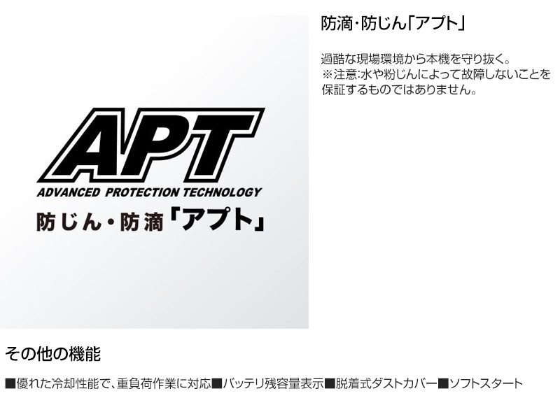 【防滴・防じん「アプト」】過酷な現場環境から本機を守り抜く。