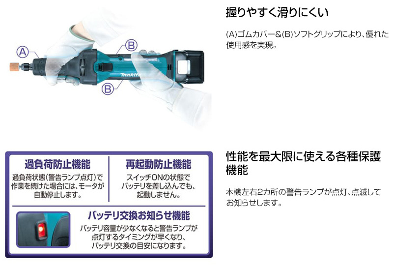 【握りやすく滑りにくい】(A)ゴムカバー&(B)ソフトグリップにより、優れた使用感を実現。