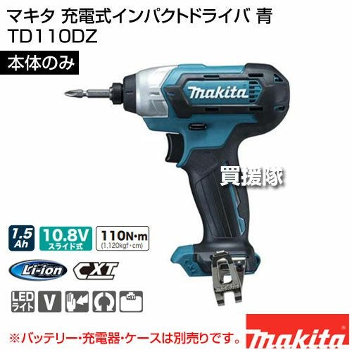 他の画像を見る 【送料無料】マキタ 充電式インパクトドライバ 青 TD110DZ マキタ 充電式インパクトドライバ 青 [本体のみ/バッテリー・充電器別売] TD110DZ 買援隊 特別価格 ¥ 10,400 税込 詳細を見る お気に入りに登録する