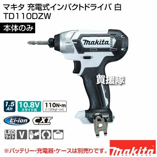 他の画像を見る 【送料無料】マキタ 充電式インパクトドライバ 白 TD110DZW マキタ 充電式インパクトドライバ 白 [本体のみ/バッテリー・充電器別売] TD110DZW 買援隊 特別価格 ¥ 10,400 税込 詳細を見る お気に入りに登録する
