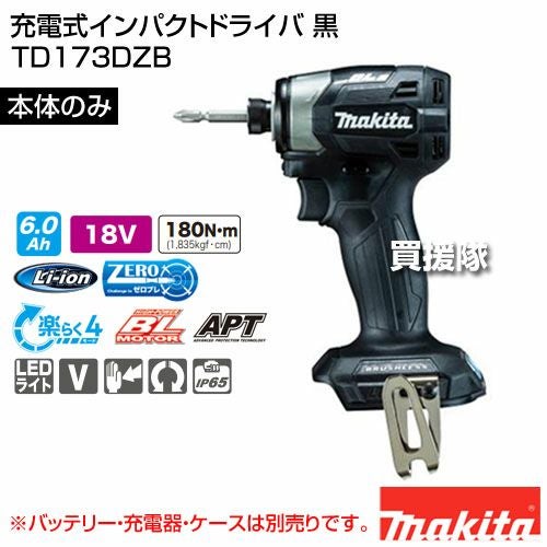 他の画像を見る 【送料無料】マキタ 充電式インパクトドライバ 黒 TD173DZB マキタ 充電式インパクトドライバ 黒 [本体のみ/バッテリー・充電器別売] TD173DZB 買援隊 特別価格 ¥ 25,410 税込 詳細を見る お気に入りに登録する