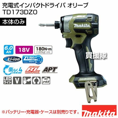 他の画像を見る 【送料無料】マキタ 充電式インパクトドライバ オリーブ マキタ 充電式インパクトドライバ オリーブ [本体のみ/バッテリー・充電器別売] TD173DZO 買援隊 特別価格 ¥ 25,410 税込 詳細を見る お気に入りに登録する