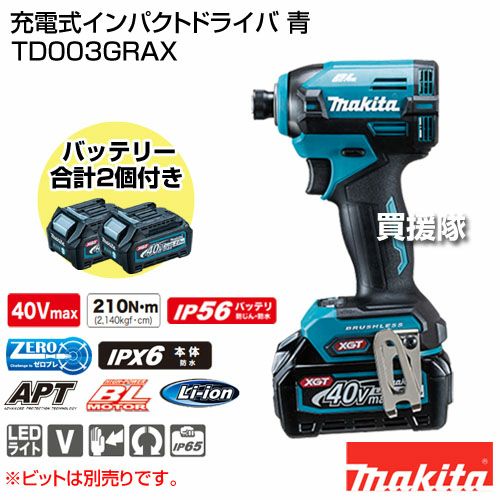 他の画像を見る 【送料無料】マキタ 充電式インパクトドライバ 青 マキタ 充電式インパクトドライバ 青 TD003GRAX 買援隊 特別価格 ¥ 66,110 税込 カートに入れる お気に入りに登録する
