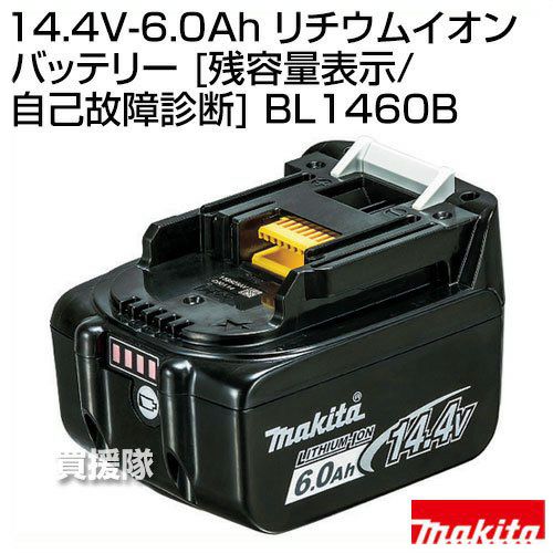 他の画像を見る 【送料無料】マキタ 14.4V-6.0Ah リチウムイオン マキタ 純正 14.4V-6.0Ah リチウムイオンバッテリー [残容量表示/自己故障診断] BL1460B 買援隊 特別価格 ¥ 18,900 税込 カートに入れる お気に入りに登録する