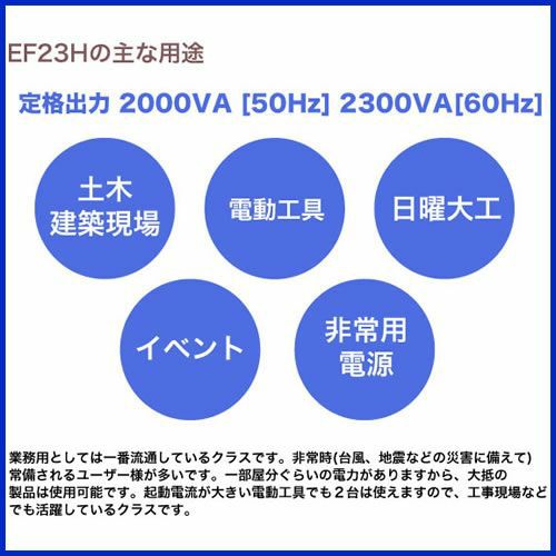 防音構造などにより、開放型の発電機に比べ優れた防音効果を得ることができ、夜間または住宅街での作業、アウトドアや屋外イベントなど、音が気になるシーンでのご使用に特に配慮したモデルとなっています。