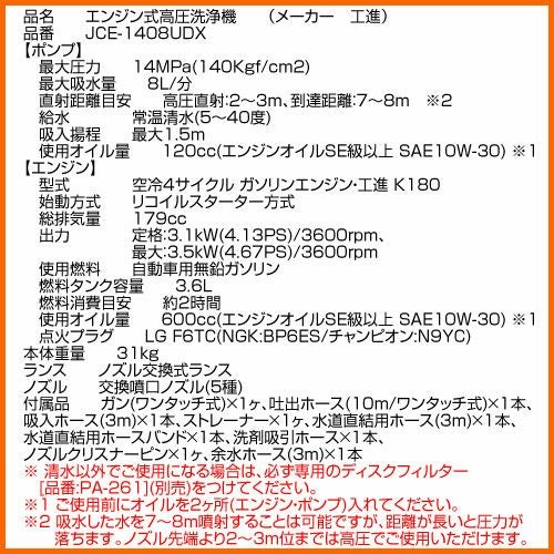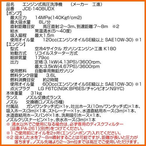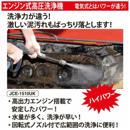 他の画像を見る 【送料無料】14MPaの高圧力で農機の洗浄に!大型タイヤ採用 【ディスクフィルター+10m延長ホースセット】工進 エンジン式高圧洗浄機 JCE-1408UDX-S3 買援隊 特別価格 ¥ 80,804 税込 詳細を見る お気に入りに登録する