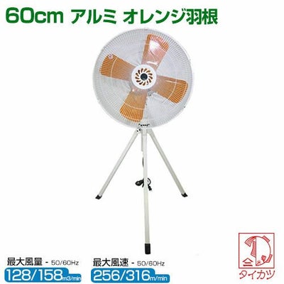 工場内を爽やかな風が通りいやなにおいも吹き飛ばします。 ハイパワーの扇風で、仕事場を快適空間に シンナー等いやなにおいを吹き飛ばし、クリーンな室内づくりに 送風を利用して、チリ・ホコリ・微粉を一定方向に集めることができます。 三脚折りたたみ式 60cm アルミ羽根・オレンジ塗装