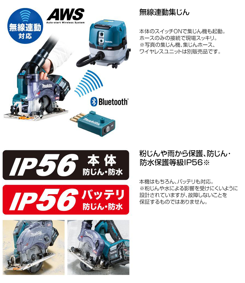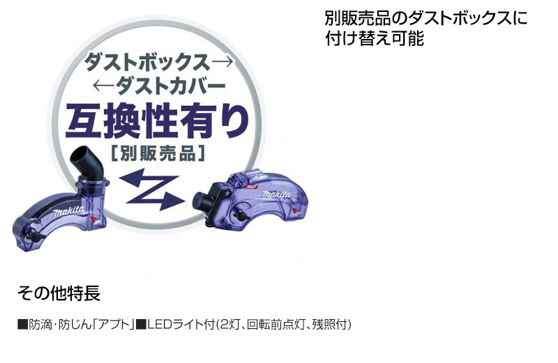 【逆勝手仕様 専用ダストカバー センターバランス 切断 自動変速 定回転制御 切断音低減 高出力 高耐久 メンテナンスフリー 無線連動集じん対応 防じん 防水 IP56 反動低減 防滴 LED ケース付 充電式 コードレス 工具 電動工具 DIY ツール 工具 用品 makita 純正品】