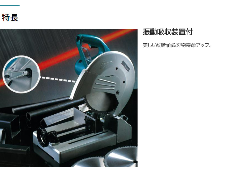 振動吸収装置で美しい切断面、刃物寿命アップ ●アングル、チャンネル、ライニング鋼管、ガス管、丸棒など