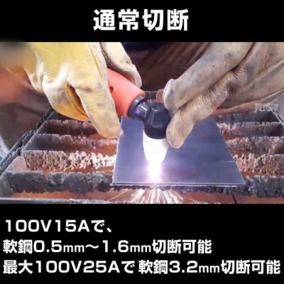 ・電源100V 15Aを使用の場合、軟鋼1.6mmの素材が切断可能