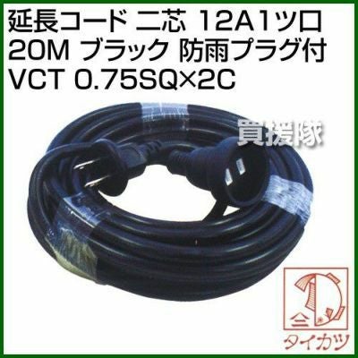 他の画像を見る しなやかに、強く、便利に使う延長補助コード 鯛勝産業 延長コード 二芯 12A1ツ口 5M ブラック 防雨プラグ付 VCT 0.75SQ×2C [カラー:ブラック] 買援隊 特別価格 ¥ 3,135 税込 詳細を見る お気に入りに登録する