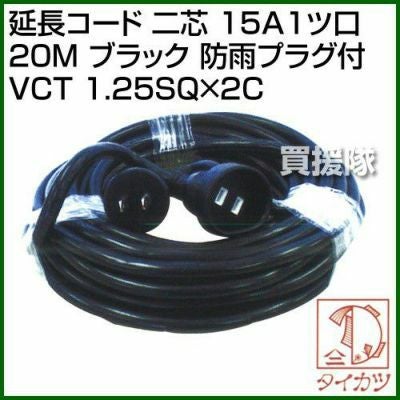 他の画像を見る 【送料無料】しなやかに、強く、便利に使う延長補助コード 鯛勝産業 延長コード 二芯 15A1ツ口 20M ブラック 防雨プラグ付 VCT 1.25SQ×2C [カラー:ブラック] 買援隊 特別価格 ¥ 7,315 税込 詳細を見る お気に入りに登録する