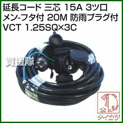 他の画像を見る しなやかに、強く、便利に使う延長補助コード 鯛勝産業 延長コード 三芯15A3ツ口 メン-フタ付 20M ブラック 防雨プラグ付 VCT 1.25SQ×3C [カラー:ブラック] 買援隊 特別価格 ¥ 9,350 税込 詳細を見る お気に入りに登録する