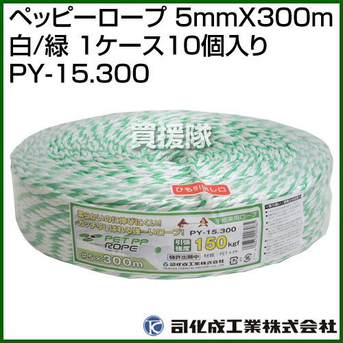 他の画像を見る 【送料無料】緩まず高強度なハイブリッドロープ 司化成工業 ペッピーロープ 5mm×300m 白/緑 1ケース10個入り PY-15.300 [カラー:白/緑] 買援隊 特別価格 ¥ 16,360 税込 カートに入れる お気に入りに登録する