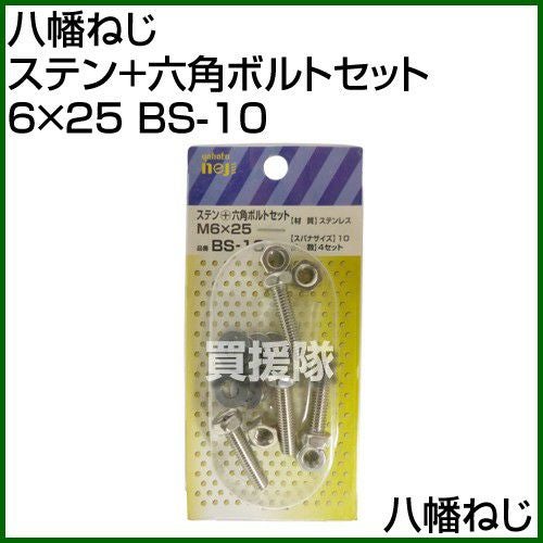 八幡ねじ ステン+六角ボルトセット 6×25 BS-10 [サイズ:M6×25]