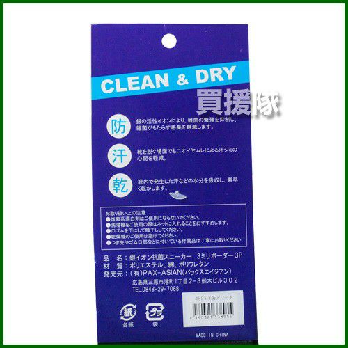 他の画像を見る 銀イオン抗菌防臭靴下 銀マジックシリーズ パックスエイジアン 涼感銀イオン抗菌防臭五本指スニーカー靴下晒3足組 PAX-818 買援隊 特別価格 ¥ 1,120 税込 カートに入れる お気に入りに登録する