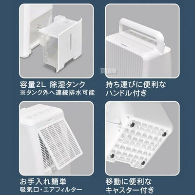 お部屋の除湿だけでなく、部屋干しの乾燥にも大活躍。 生乾きのにおい対策や洗濯の効率アップにも。 簡単操作&お手入れもらくらく。 ●除湿&送風で、衣類乾燥の効率アップ ●コンプレッサー式 ●切りタイマー2・4・6時間 ●湿度設定 連続・40・50・60% ●満水時自動停止 ●連続排水可能 ●霜降り機能