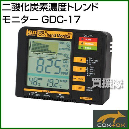 他の画像を見る 【送料無料】二酸化炭素を見える化する COXFOX 二酸化炭素濃度トレンドモニター GDC-17 [カラー:ブラック] 買援隊 特別価格 ¥ 18,260 税込 在庫切れ 詳細を見る お気に入りに登録する