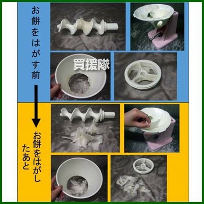 熱いお餅を直接触ることなく、大小自在に調節! 【特長】 ●大容量のホッパー(5.4リットル)で、しかも軽量コンパクト。 ●テーブルに固定できる吸盤式。 ●餅切りナイフは餅のつきにくいフッ素樹脂加工。 【メリット】 ●誰でも手軽に丸餅が作れる。(熱くない・早い) ●大小自在の大きさに調整できる。