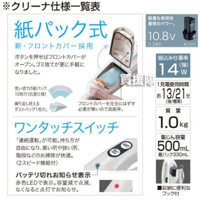 品名 マキタ コードレス掃除機 充電式クリーナー CL102DW