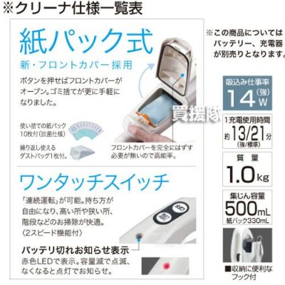 ≫掃除機一式(CL102DW バッテリー・充電器のセット品)はこちら